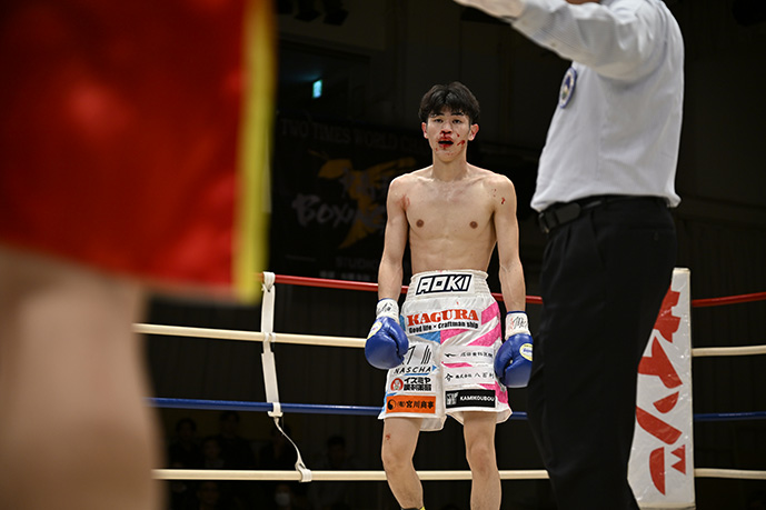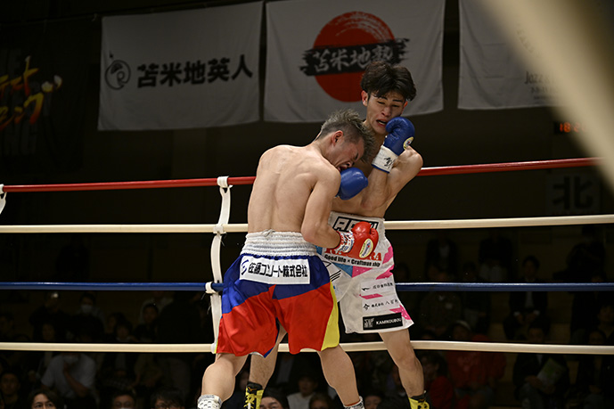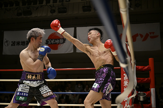 | 第6試合 | 62.5㎏契約 8回戦 | ◎鈴木 龍(元気) | ●大場 翔(一力) | TKO 8R1’45” |
