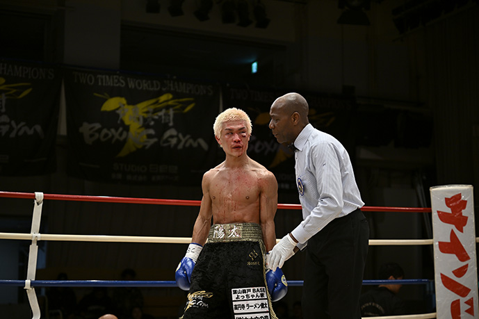| 第3試合 | フライ級 4回戦 | ●三原 陽太(戸髙秀樹) | 〇渡邉 響太(ワタナベ) | 4R 0’52”続行不能 三原の左目下カット |